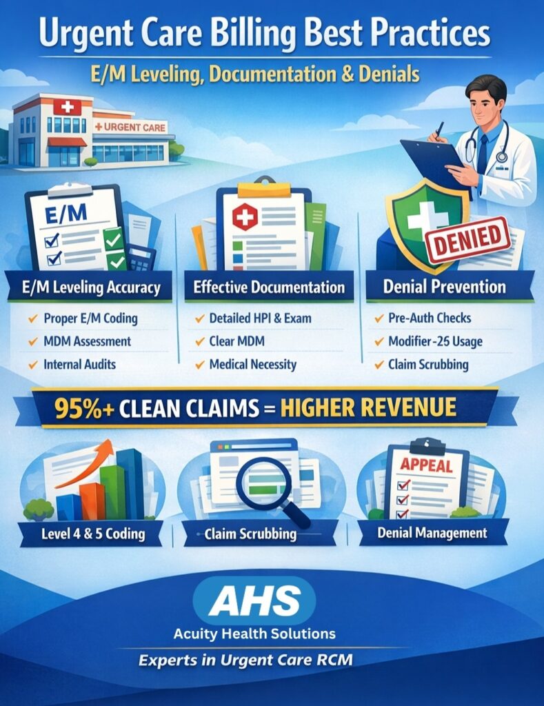 Need urgent care billing expertise? Acuity Health Solutions — 98% clean claim rates with over 50 centers across doorsteps nation-wide, specializing in high-volume urgent care RCM.